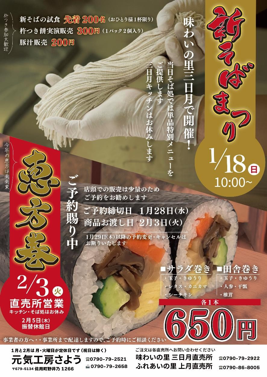 新そばの季節。新そばを振る舞い、三日月みそが1割引になります。